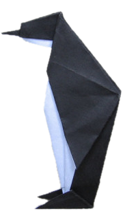 Léteznek oldalanként eltérő színű papírok is. Amennyiben ügyelünk arra, hogy melyik oldal hol látszódjon, ezekből hajtogathatók kétszínű figurák is, mint például az itt látható pingvin. Erre további példákat is találhatsz a "figurák" menüpontban, a különböző papírfajtákról pedig a könyvemben olvashatsz többet, ide kattintva.